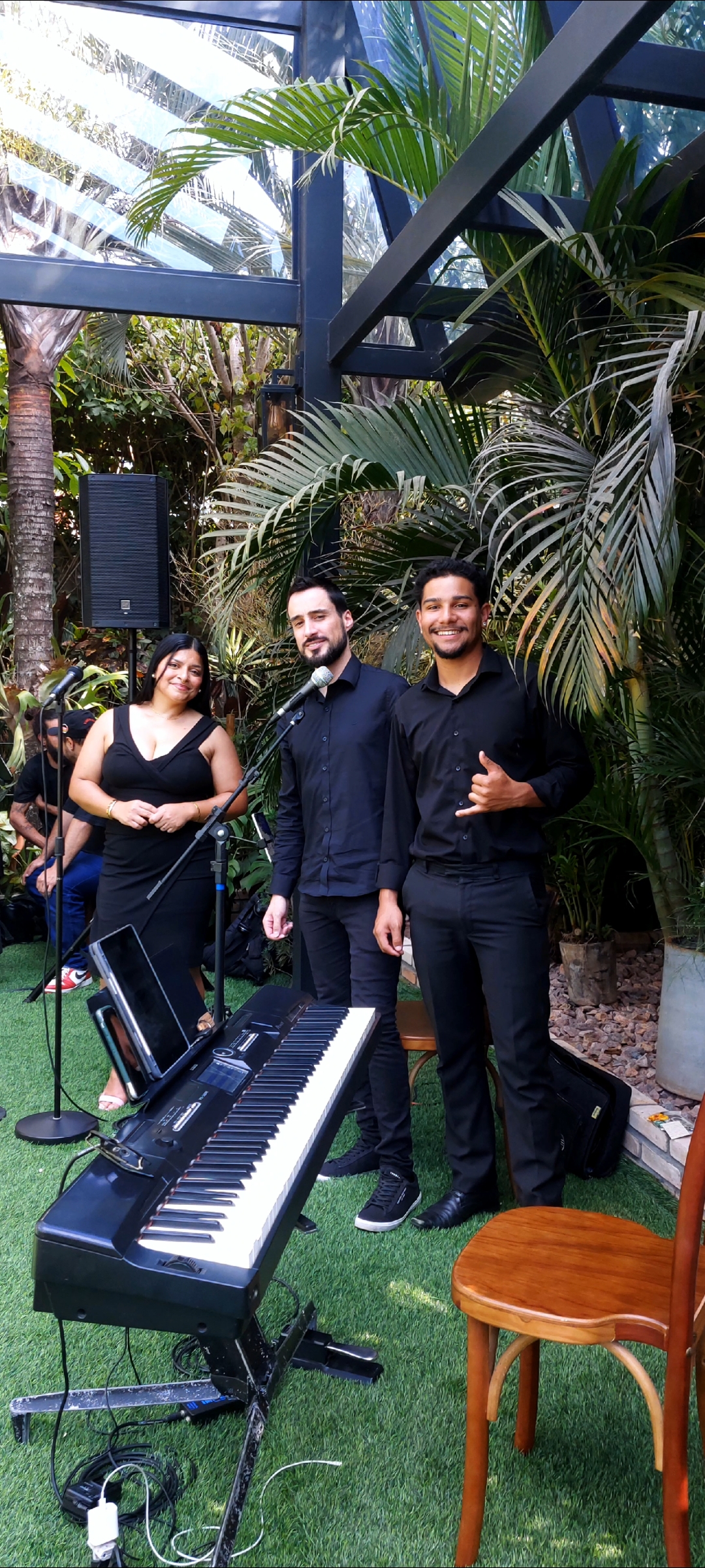 Formações reduzidas (ex.: Duo ou Trio) ideais para ambientes elegantes, lounges e jantares — perfeita combinação entre presença vocal e sutileza instrumental.